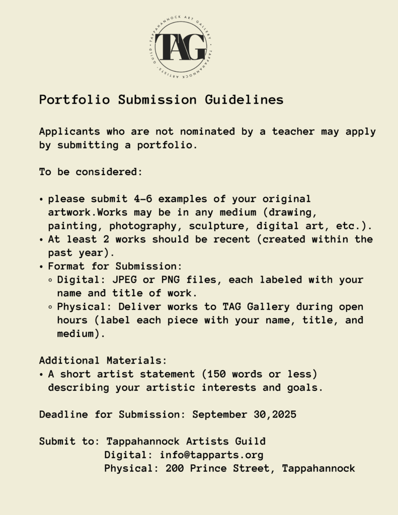 Print this form and mail to TAG, P.O. Box 2547, Tappahannock, VA 22560.Or scan and email to info@tapparts.org.